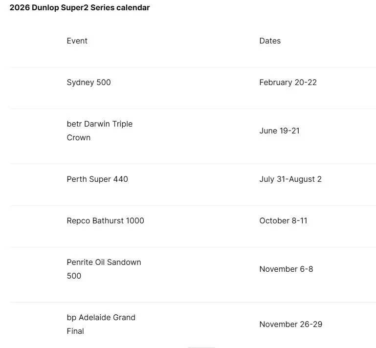 2026  SUPERCARS  DUNLOP SERIES CALENDAR