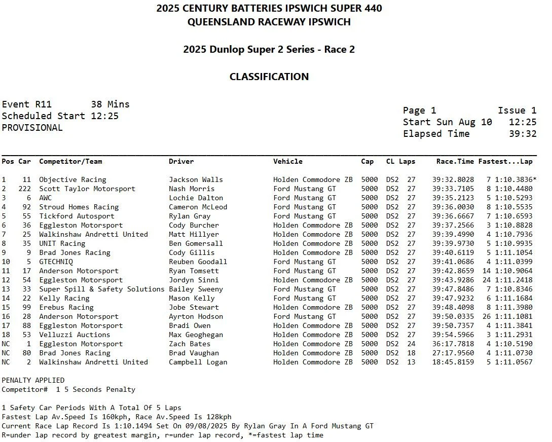 In race 2, Jackson Walls claimed his maiden race and round wins in the Dunlop Super2 Series.