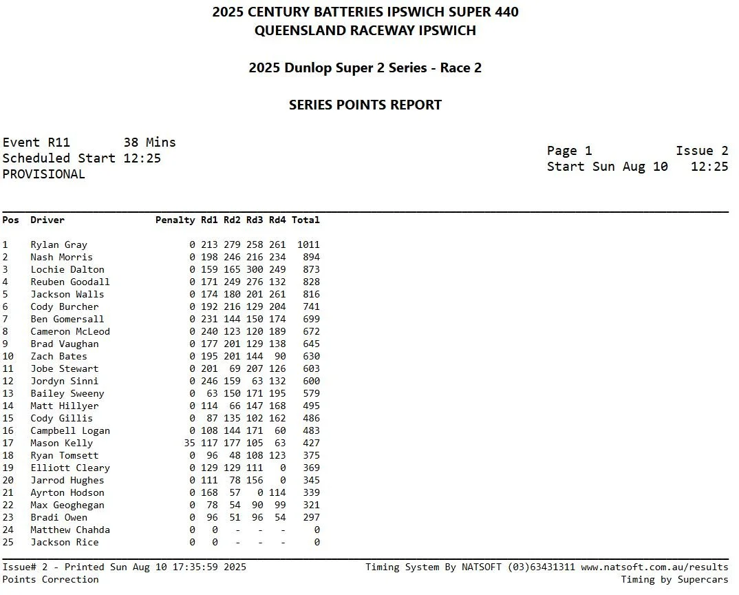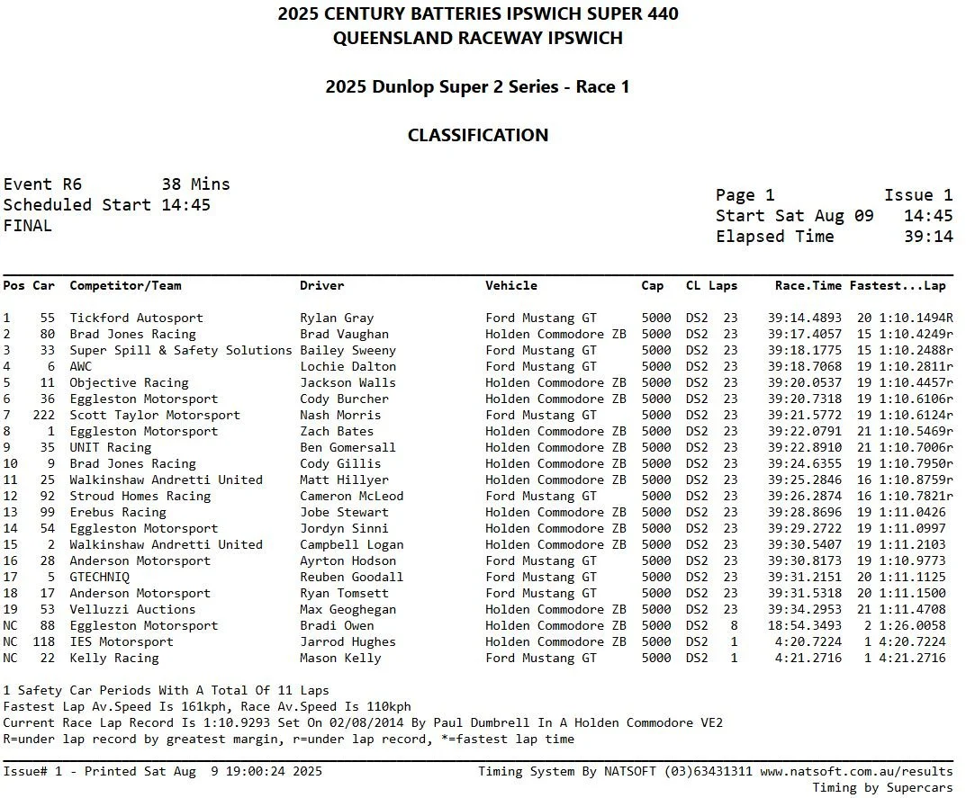 Blanchard Racing Team driver Bailey Sweeny has come through a stellar weekend, home in 13th place in Race 2, on Day 3, of Round 4, of the 2025 Dunlop Super 2 series at Queensland Raceway at Ipswich.